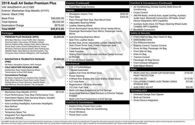 2018 Audi A4 Manhattan Gray Metallic 2.0T Premium Plus quattro quattro 2.0L I4 TFSI DOHC 7-Speed Automatic S tronic