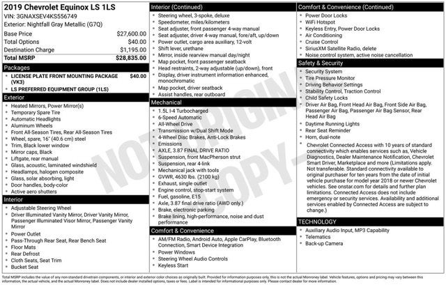 2019 Chevrolet Equinox Nightfall Gray Metallic LS AWD 1.5L DOHC 6-Speed Automatic Electronic with Overdrive