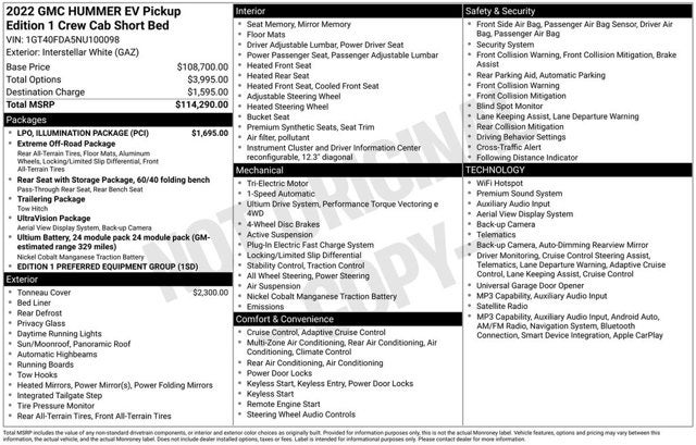 2022 GMC Hummer EV Interstellar White Edition 1 4WD Electric Motor 1-Speed Automatic