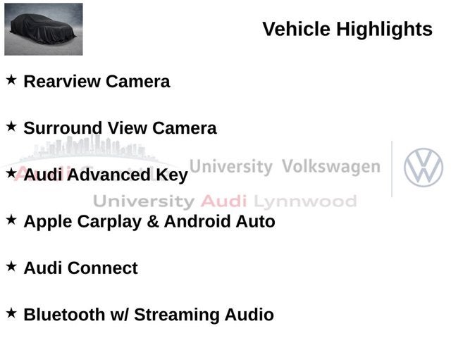 Locally Owned, CarFax Certified 1-Owner, Premium Package, Black Optic Package, Convenience Package, LED Interior Lighting Plus Pkg, 19 Wheel Package, Quattro All-Wheel-Drive, Adaptive Cruise Control, Panoramic Sunroof, Heated Auto-Dimming Mirrors, Front & Rear Parking Sensors, Rearview Camera, Surround View Camera, Audi Advanced Key, Apple Carplay & Android Auto, Audi Connect, Bluetooth® w/ Streaming Audio, SiriusXM Radio, Wireless Phone Charging Pad, Heated Front Seats, Passive Keyless Entry, Push-Button Start, Power Liftgate. CARFAX One-Owner.