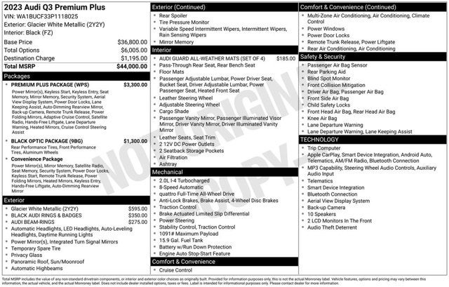 2023 Audi Q3 Glacier White Metallic Premium Plus quattro quattro 2.0L 4-Cylinder TFSI 8-Speed Automatic with Tiptronic