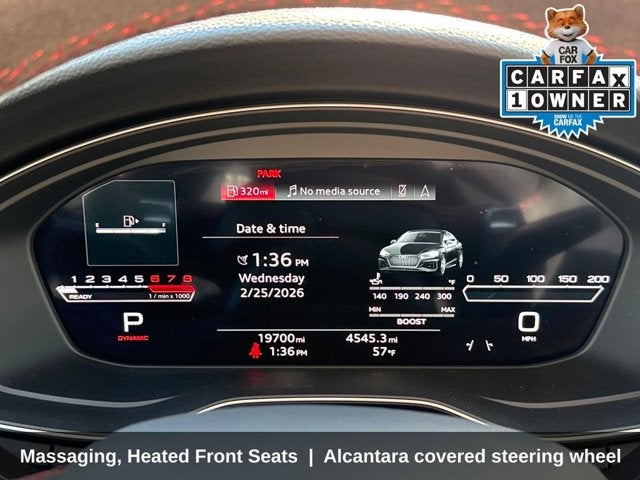 CarFax Certified 1-Owner, Dynamic Package, RS Driver Assistance Pkg, RS Design Package, RS Sport Exhaust, RS Sport Suspension, Navigation Package, 19 Wheel Package, Quattro All-Wheel-Drive, Adaptive Cruise Control, Park Assist, Heads-Up Display, Panoramic Sunroof, Front & Rear Parking Sensors, Rearview Camera, Top View Camera System, Audi Active Lane Assist, Audi Side Assist Blind Spot Monitor, Audi Virtual Cockpit, Audi MMI Navigation Plus, Bang & Olufsen 3D Sound System, Apple Carplay & Android Auto, Audi Connect, Bluetooth® w/ Streaming Audio, SiriusXM Radio, Fine Nappa Leather Interior, Heated Steering Wheel, Power Liftgate, Massaging, Heated Front Seats, Alcantara covered steering wheel, RS logo floor mats, Seatbelts with red edging, Matte alu optic mirror housings, Red brake calipers, Audi Pre-Sense Rear, Audi Side Assist, Matte Alu Optic Exterior Mirror Housing, Side Assist Package. CARFAX One-Owner.