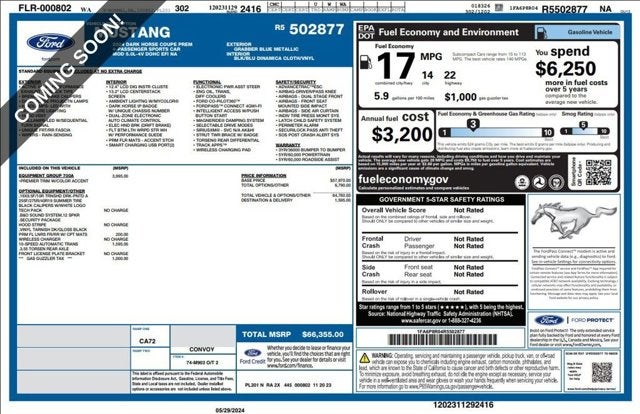 2024 Ford Mustang Grabber Blue Metallic Dark Horse RWD 5.0L V8 DOHC 32V 10-Speed Automatic