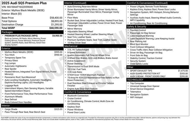 2025 Audi SQ5 Mythos Black Metallic Premium Plus quattro quattro 3.0L TFSI 8-Speed Automatic with Tiptronic