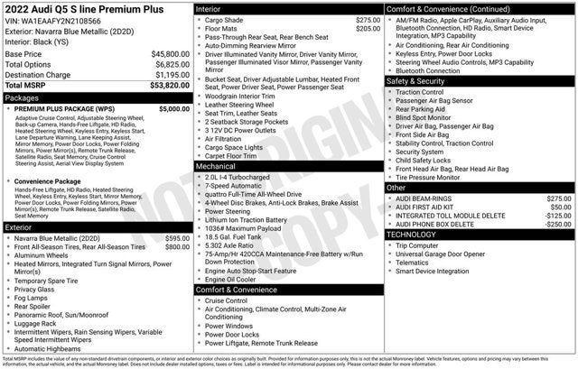 2022 Audi Q5 Navarra Blue Metallic 45 S line Premium Plus quattro quattro 2.0L Turbocharged 7-Speed Automatic S tronic