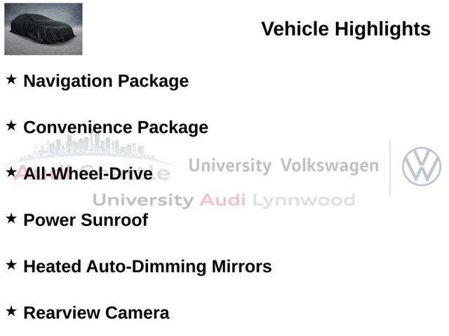 Navigation Package, Convenience Package, All-Wheel-Drive, Power Sunroof, Heated Auto-Dimming Mirrors, Rearview Camera, Blind Spot Monitor, SiriusXM Radio, Heated Steering Wheel, Heated Front Seats, Remote Engine Start, Driving Assistance Package, Active Driving Assistant, Lane Departure Warning.