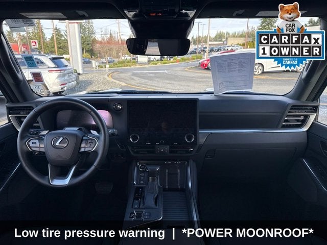*3.4L V6 TURBO 349hp*, *OVERTRAIL+*, *FULL TIME 4WD*, *LEXUS SAFETY SYSTEM + 3.0 LANE TRACING ASSIST*, *LEXUS INTERFACE W/ 14 TOUCHSCREEN*, *DRIVE CONNECT WITH CLOUD NAVIGATION*, *OVERTRAIL+*, *CRAWL CONTROL*, *DOWNHILL ASSIST CONTROL*, *ELECTRONIC KINETIC DYNAMIC SUSPENSION SYSTEM*, *INTUITIVE PARK ASSIST*, *REAR PEDESTRIAN PEDESTRIAN DETECTION*, *MARK LEVINSON PREMIUM AUDIO SYSTEM*, *TRAFIC JAM ASSIST*, *HEAD UP DISPLAY*, *COOL BOX*, *BLACKOUT EMPLEM OVERLAYS*, *ROCK RAILS*, 4D Sport Utility, 3.4L V6, 10-Speed Automatic, 4WD, Caviar, Black w/NuLuxe Seat Trim, *POWER MOONROOF*, *POWER WINDOWS*, Adaptive suspension, Air Conditioning, Automatic temperature control, Driver Monitor Camera, Four wheel independent suspension, Front Cross Traffic Alert-Braking, Front dual zone A/C, Head-Up Display, Lane Change Assist, Mark Levinson Premium Surround System, MEMORY SEAT, Navigation system: Drive Connect Cloud Navigation (3-year trial subscription included), Overtrail Plus Package, Power driver seat, Power steering, Radio: Lexus Interface w/14 Touchscreen, Rear air conditioning, Rear window defroster, Remote keyless entry, Steering wheel memory, Steering wheel mounted audio controls, Traffic Jam Assist. CARFAX One-Owner.
